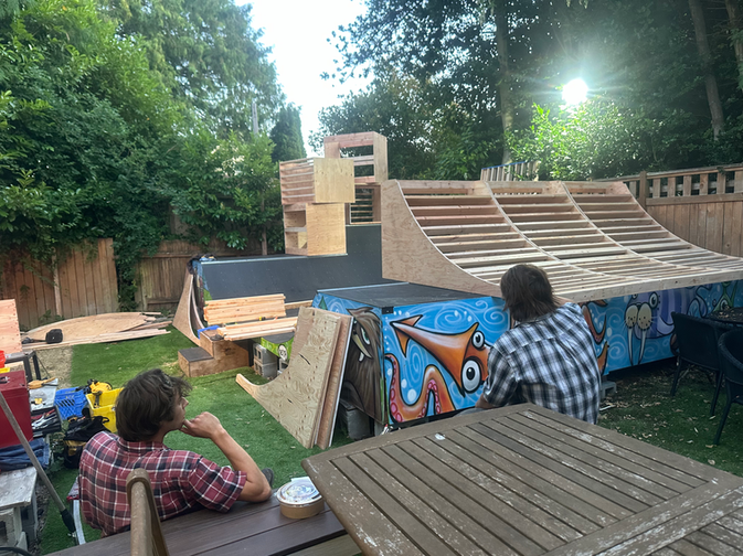 In July of 2024 we came back out of retirement to build a bigger and better mini half pipe for the Cal Anderson Courts! It's 3.75' tall and 16' wide.